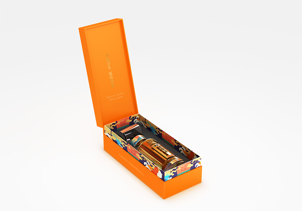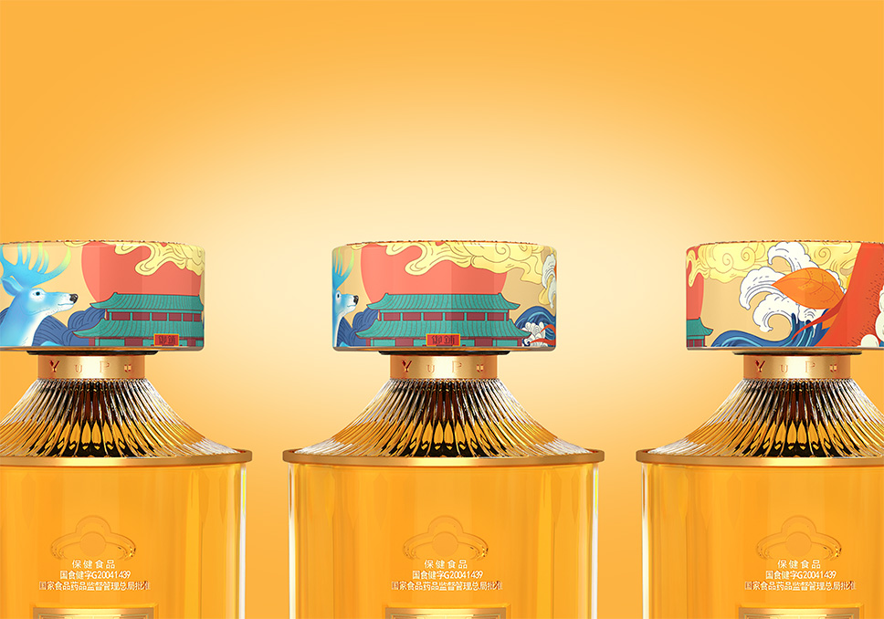 李華清產(chǎn)品戰(zhàn)略為御鋪養(yǎng)生酒開發(fā)了全新的養(yǎng)生酒瓶型,瓶型整體似“圓柱”造型,瓶口在皇家園林中的天壇祈年殿建筑中得到靈感,外部臺基屋檐圓形層層收縮上舉既造成強(qiáng)烈的向上動感,又使人感到端莊穩(wěn)重,整體瓶身為圓柱形,瓶口借鑒祈年殿的房檐,增加瓶身的層次感。以御鋪品牌藥鋪文化和皇家文化結(jié)合產(chǎn)品養(yǎng)生文化提煉融合,塑造御鋪專屬的識別性元素,建立品牌資產(chǎn)。