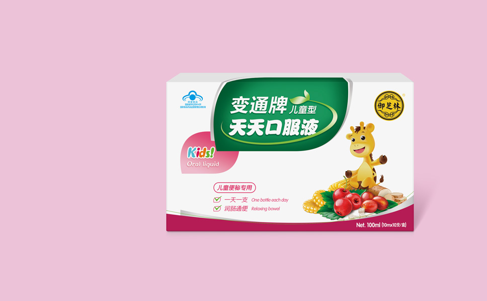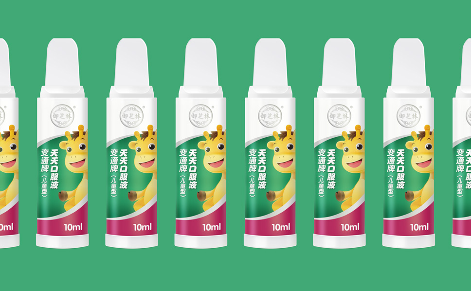 針對“變通”牌天天口服液兒童型,除了表達產品特征以及屬性之外,為了吸引消費者視覺需求,在包裝上形成視覺焦點,李華清項目團隊找到了長頸鹿這一元素,富有親和力的長頸鹿,是每個孩子熟悉、喜愛的動物形象,傳遞品牌對孩子快高長大的祝愿,同時長頸鹿天性溫順、平和,傳遞出產品溫和、自然的特性。
